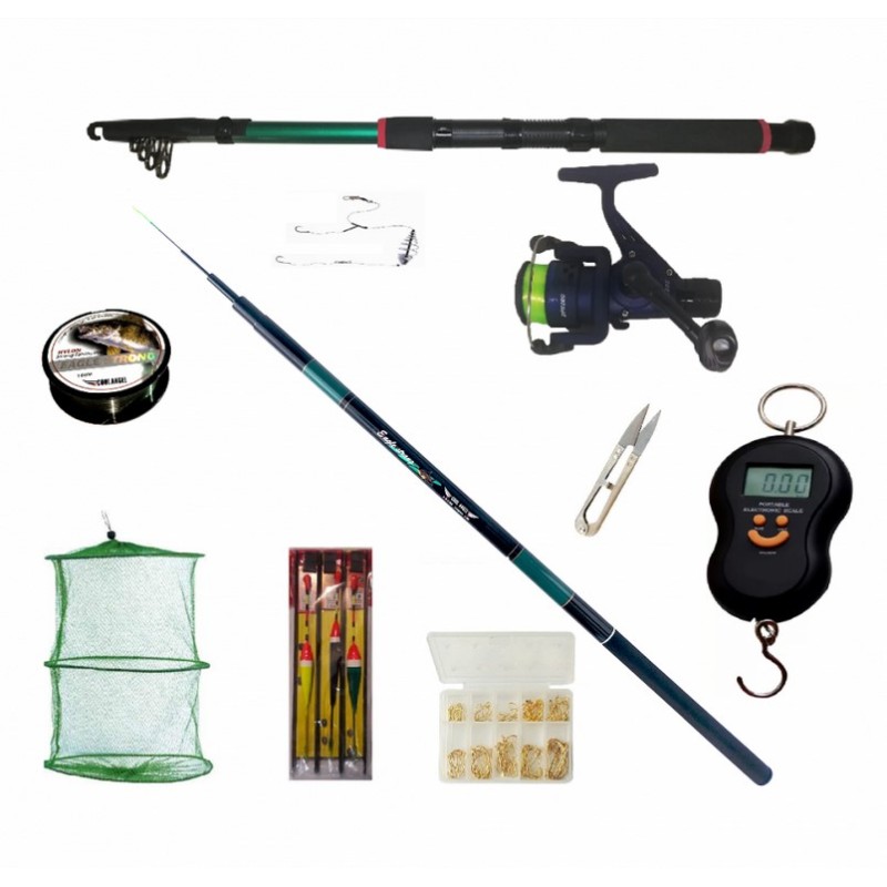 Set pescuit sportiv cu lanseta telescopica 2,1m, undita telescopica 3,6m, mulineta si accesorii, ideal pentru persoana care vrea sa aibe alaturi de o lanseta si o undita, pentru un pescuit clasic.