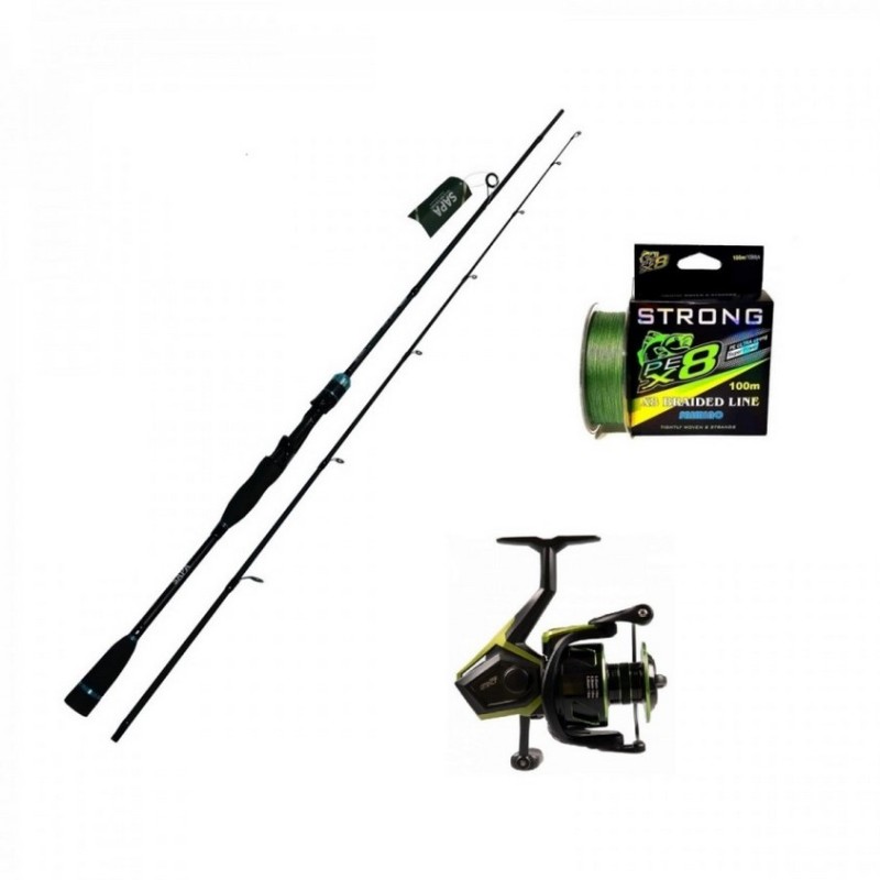 Set pescuit spinning cu lanseta SeaBig Emerald 2,1m, mulineta Istinct 1000 si fir textil Pe X8 0,30mm .