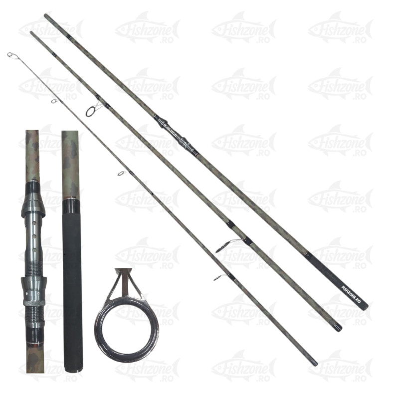 Lansetă crap Carp Special Forces 3.90m cu putere 3.75lbs, ideală pentru lanseuri lungi și precise. Model 3 segmente, lungime transport 135cm, greutate 360g, cu mandrină metalică rezistentă și design camuflaj. Perfectă pentru pescuit la crap pe lacuri și bălți mari.