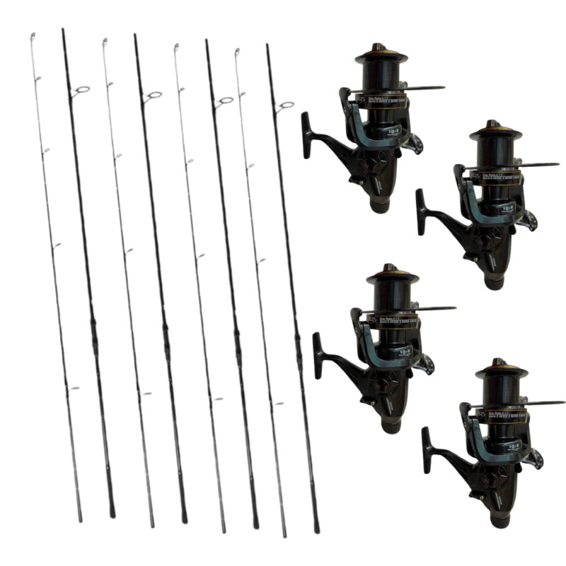 Acest set complet de pescuit la crap include 4 lansete de 3,90 m cu acțiune 3,75 lbs și 4 mulinete Long Cast 7000 Baitrunner, echipate cu 11 rulmenți, oferind performanță și fiabilitate la cel mai înalt nivel.